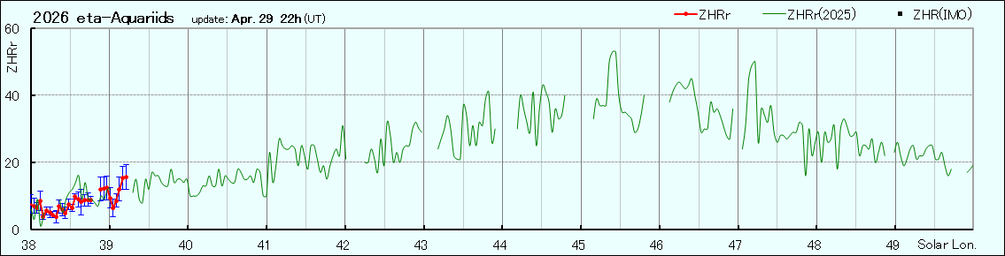 世界の流星電波観測データを用いた「2026年みずがめ座η流星群」の電波観測速報です。流星電波観測国際プロジェクトで用いているActivity Levelと、その値から算出されるZHRrを公開します。