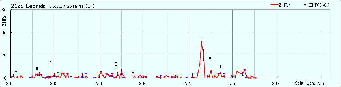「ZHR(Japan)」は、国内の眼視観測の結果で内山茂男氏発表のデータを使用しています。